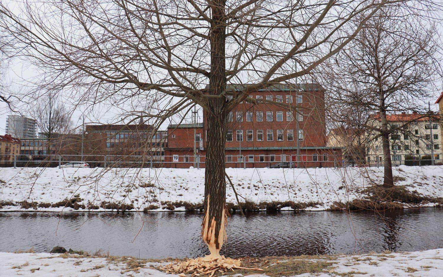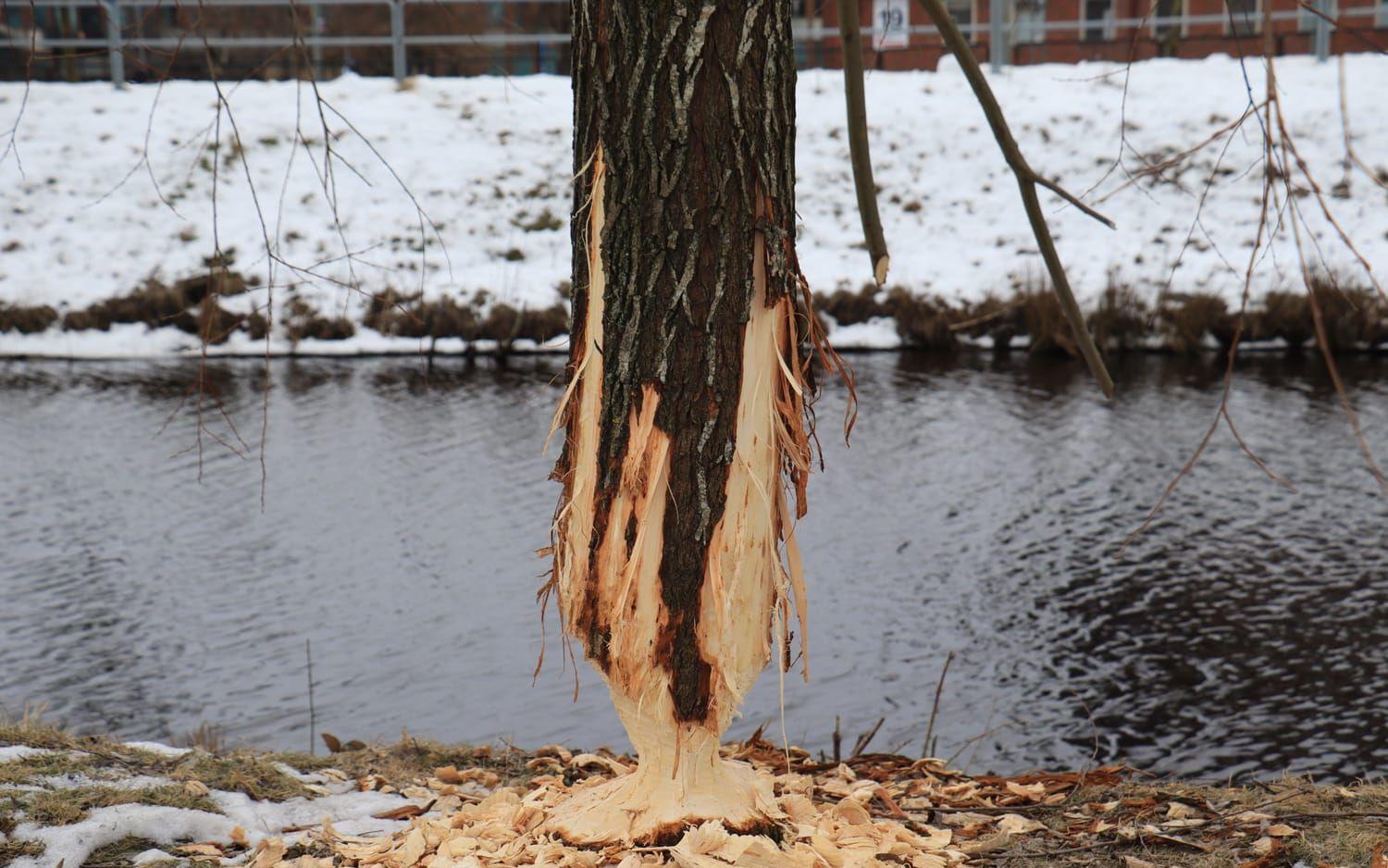 Intill Mölndalsån vid Södra Ågatan har ett träd blivit offer för en bäver. Det är inte första gången det sker.